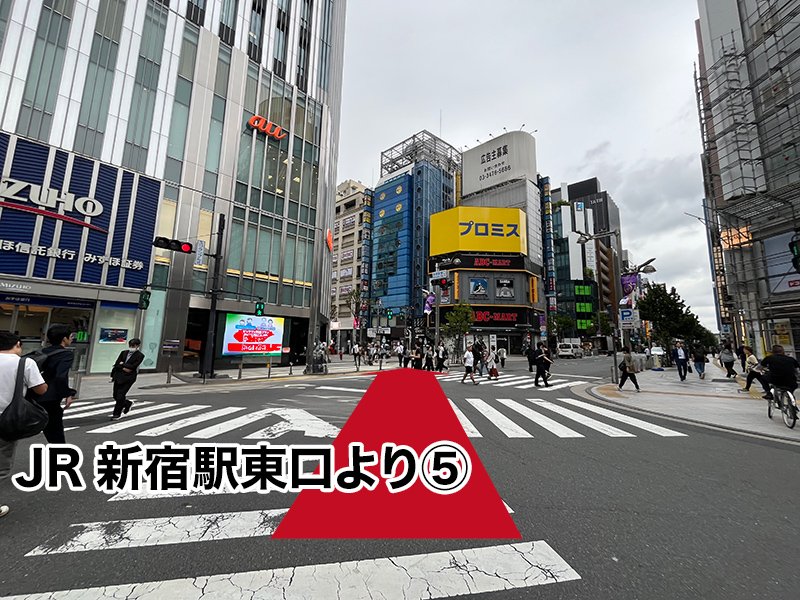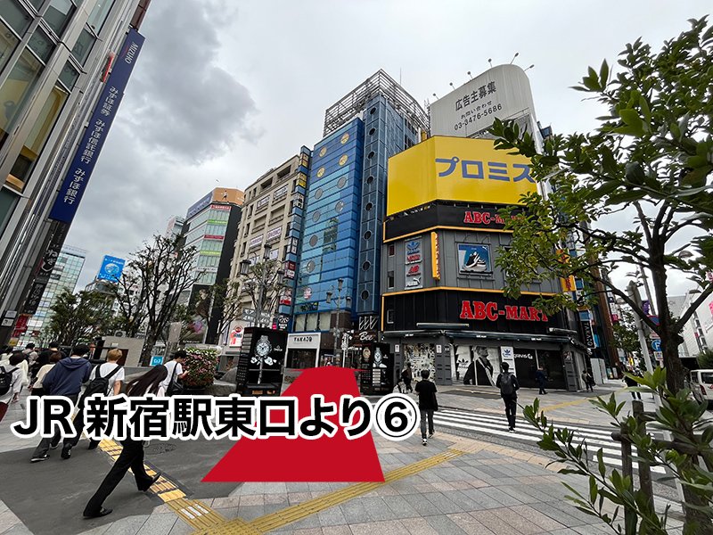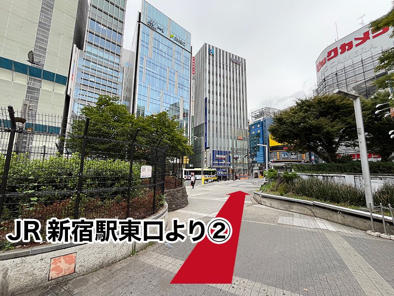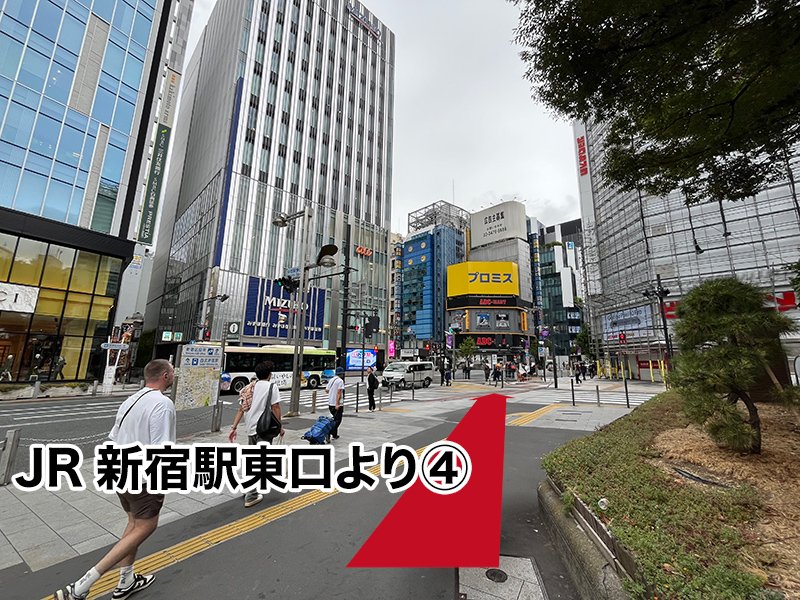 〔JR新宿駅東口〕より下記のようにお進みください。