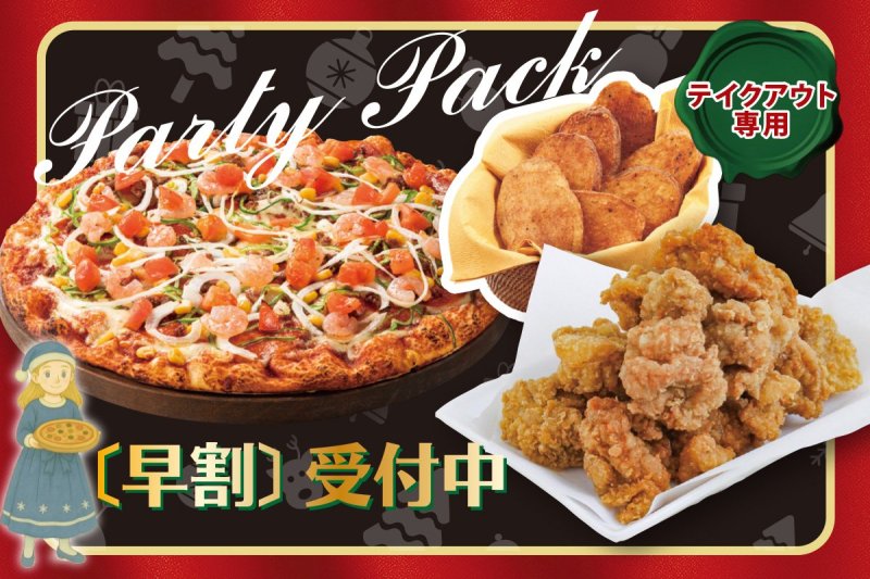 2025年12月2日 期間限定《セットがお得》パーティーパック ピザのセットがお得な《パーティーパック》が期間限定で登場 ご予約は下記店舗で受付中!・聖蹟桜ヶ丘店・新宿セノビル店・池袋東口店・吉祥寺店・イオンモール座間店・横浜西口店・ららぽーとTOKYO-BAY店・FKD宇都宮インターパーク店・よみうりランド店 店舗一覧はこちら