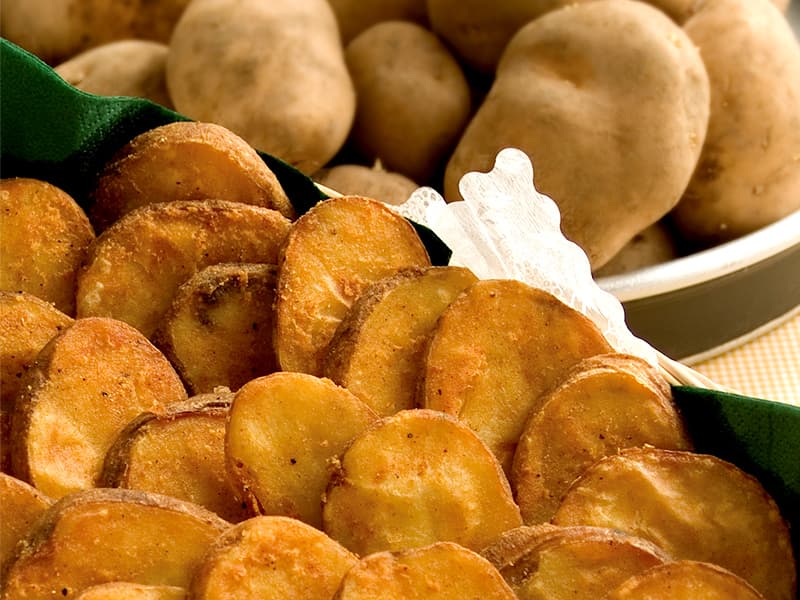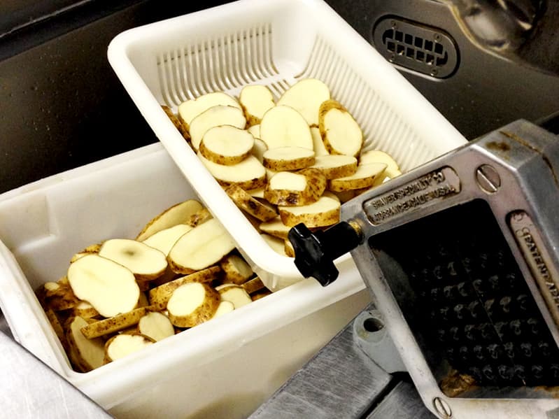 シェーキーズオリジナルのフライドポテトの秘密は、厚さ9mmにスライスされたじゃがいもにスパイシーなシーズニングをまぶし、圧力フライヤーで揚げること。真似のできないオンリーワンの美味しさです。