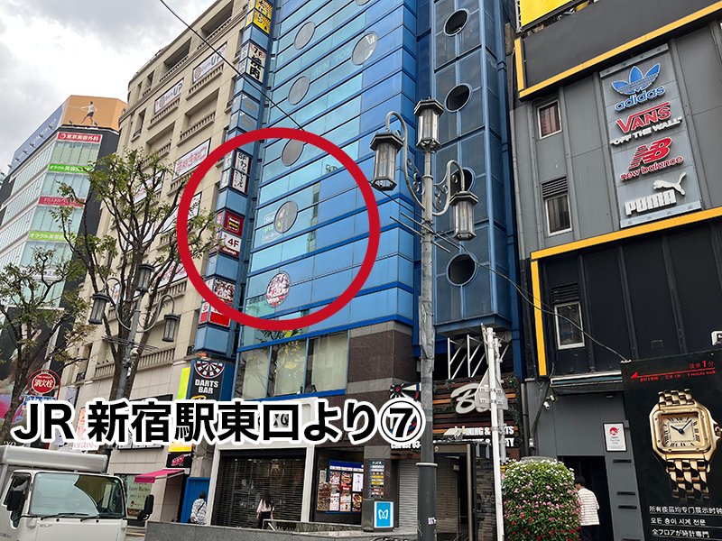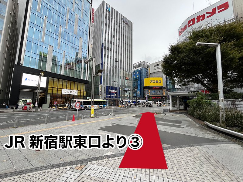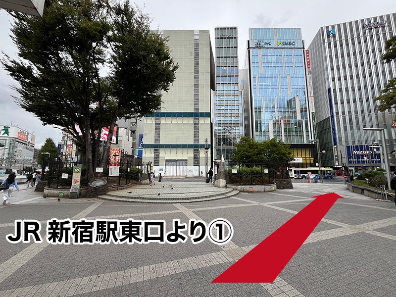 〔JR新宿駅東口〕より下記のようにお進みください。